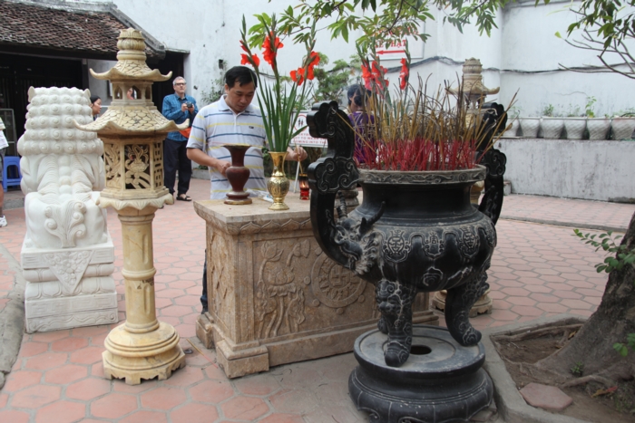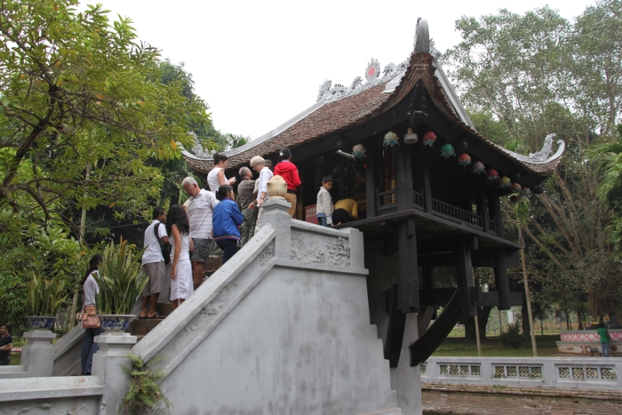 "Un écriteau en écriture chinoise, au dessus de l'entrée, indique Lien Hoa Dai "sanctuaire de la fleur de lotus". Il s'agit d'un caprice de l'empereur de Ly Thai Tong, qui a rêvé de la déesse de la Miséricorde, Quan Am, le menait à une fleur de lotus et lui disait qu'il aurait bientôt un fils. Après s'être marié et avoir engendré un fils, le souverain a édifié cette pagode en 1049 en signe de gratitude. Les français ont rasé la pagode d'origine quand ils ont quitté le pays dans les années 1950."