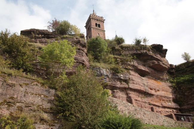 Lieu de culte celtique, l'imposant Rocher de grès rose était coiffé d'un château médiéval qui fut détruit en 1690 sur les ordres de Louis XIV.