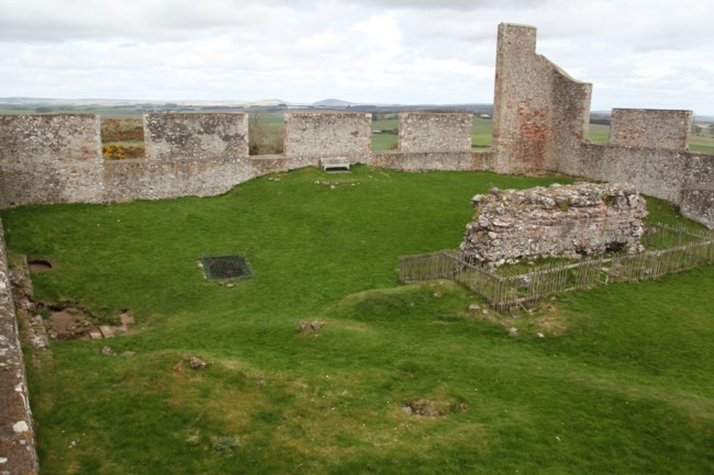 Hume Castle is the heavily modified remnants of a late 12th- or early 13th-century castle of enceinte. Standing as it does, on an impressive height above its eponymous castleton, it commands fine prospects across the Merse, with views to the English border at Carter Bar. It had historically been used as a beacon to warn of invasion. Its enormous walls were created in the 18th century but remnants of the central keep and other features can still be seen.
