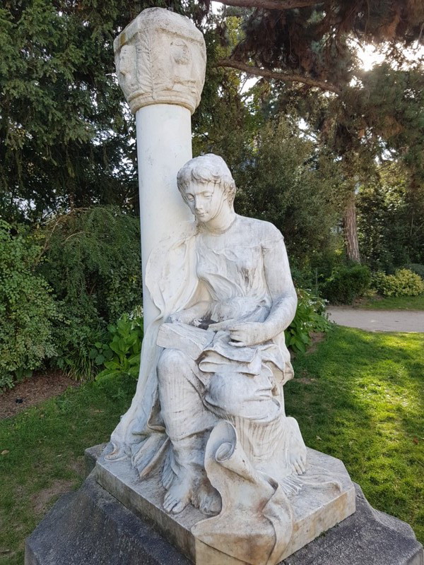 ![]() La liseuse Il s'agit d'un monument élevé le 26 octobre 1905 à la mémoire de Gabriel de Mortillet (1821-1898), un éminent archéologue et anthropologue du XIXème siècle, l'un des premiers archéologues qui se consacra à l'étude de la Préhistoire. La statue était alors en deux parties, la liseuse en pierre blanche assise au pied d'une colonne qui supportait alors le buste en bronze de Gabriel de Mortillet. Ce buste a ajourd'hui disparu, fondu par les nazis sous l’Occupation.