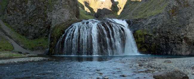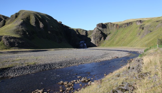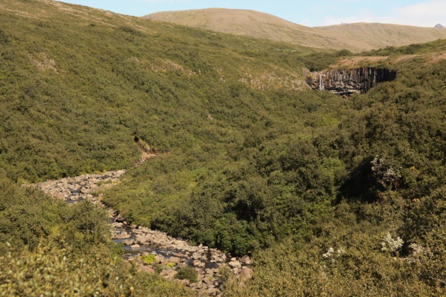 Oui, il y a des arbres en Islande Au centre milieu la cascade qu'il faut atteindre