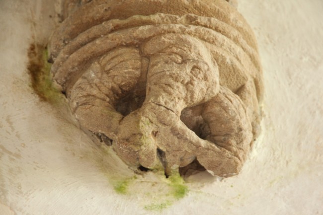 L'abbaye a aussi un côté étrange, faite de roches noires tâchées de blanc. Il avait bien plu ce jour là, peut être que la pluie avait accentué cette teinte finalement très morose de l'abbaye.
